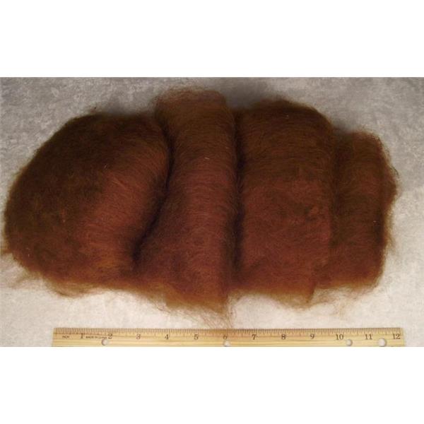 first clip brown suri over dyed auburn brown and carded on a roving carder