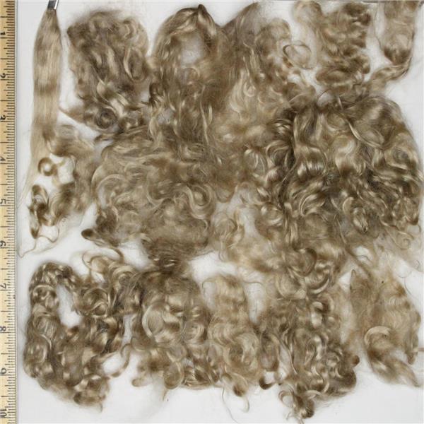 1 oz lots Mohair is the hair from the angora goat , it is very silky and makes wonderful doll hair . Dyed for doll makers to have a nice natural looking hair color that will look good on your doll or fairy. wonderful for rooting and wig making . This lot is not lined up, it is ready to be separated into curls for your dolls this was a lot that had several textures together some parts are more curly than others , and the curls are mostly 4" but range from 3" to 6"