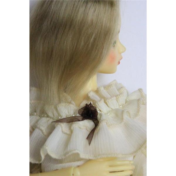 Photo shows Temporary photo dyed mohair on doll to show the color this dye will make at full strength