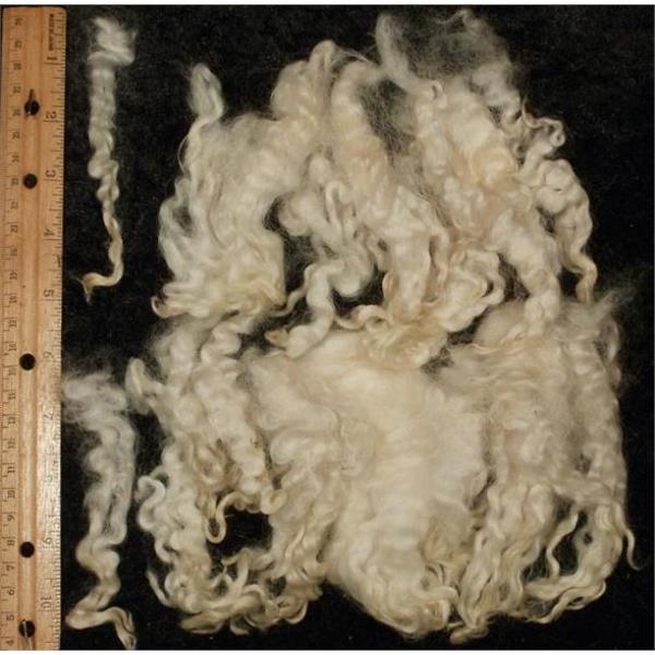 1 oz ( = 28.35g ) of washed Cotswoldcurls in natural creamy white , some locks are deeper toned at the tips
