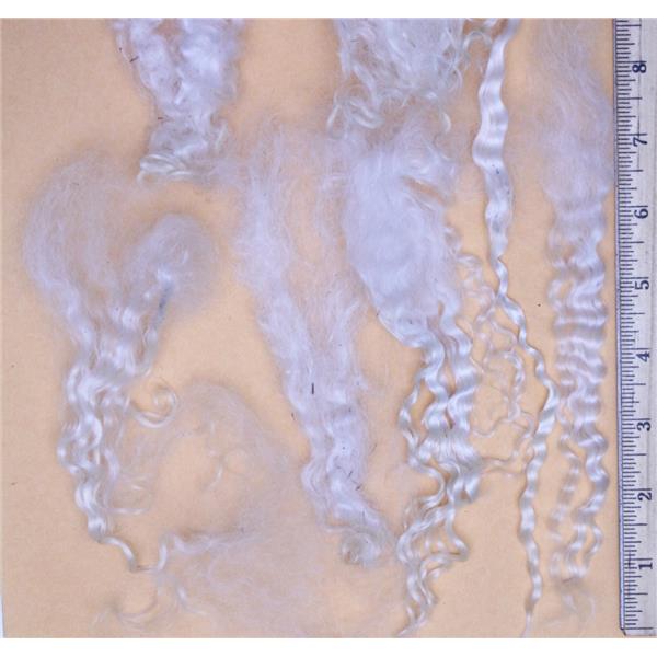 Mohair washed white yearling/ extra fine adult remnants 3-7" length