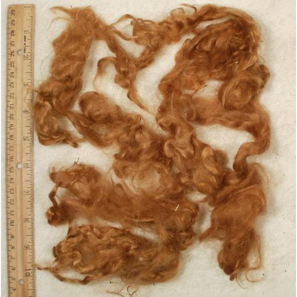 1 oz ( = 28.35g ) of dyed mohair curls Golden red Full Strength , very soft wavy mohair