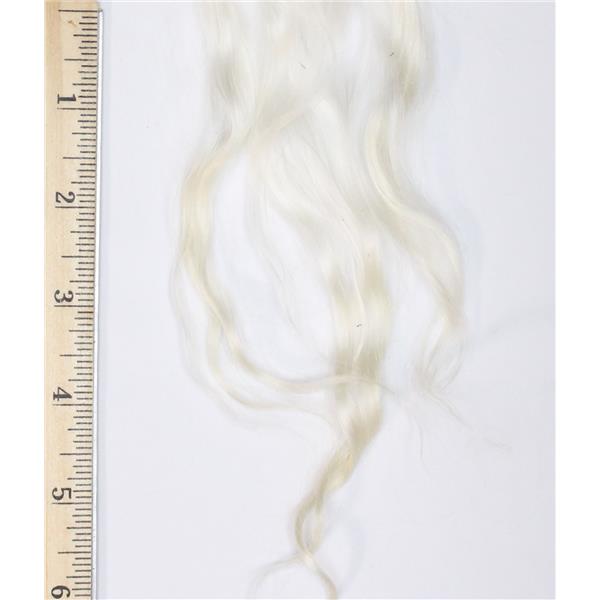 This is a 2.7 oz lot of shorter mohair. Color is natural white unwashed locks shorter locks from item 26658