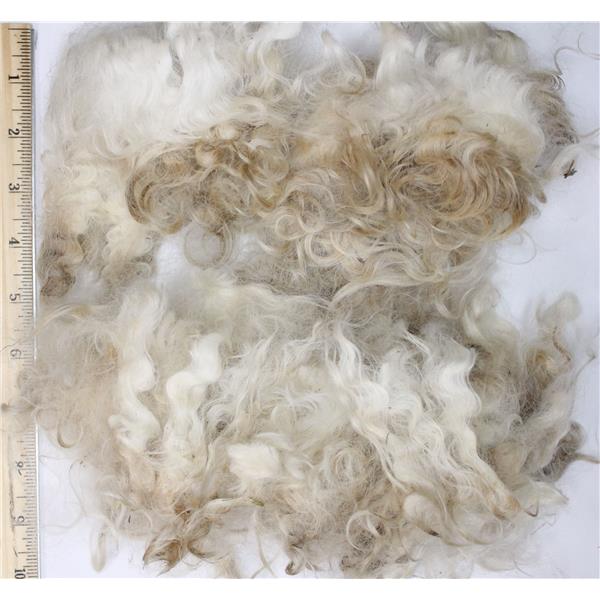 This is a 2 oz lot of this wonderful mohair. Color is natural white sorted unwashed locks shorter locks from item 26658