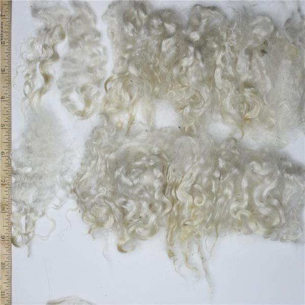 Natural white mohair locks are white but some have bits of amber at the tips this is a soft adult mohair with a curly texture and nice shine ( combed locks are not included ) -