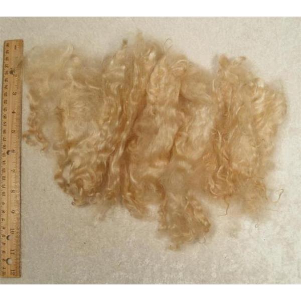 1 oz ( = 28.35g ) of dyed mohair locks Light golden blonde , very soft adult mohair