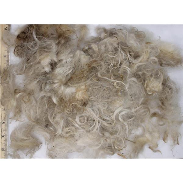 This is a 2.7 oz lot of shorter mohair. Color is natural white unwashed locks shorter locks from item 26658